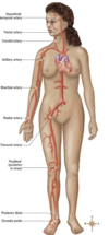 Systemic circulation - blood from left ventricle of the heart through the aorta and other arteries to all parts of the body.