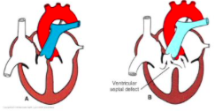 -increased amount of blood on right side (and therefore less in the left) results in hypertrophy (enlargement) of the right side of the heart and undevelopment of the left side of the heart