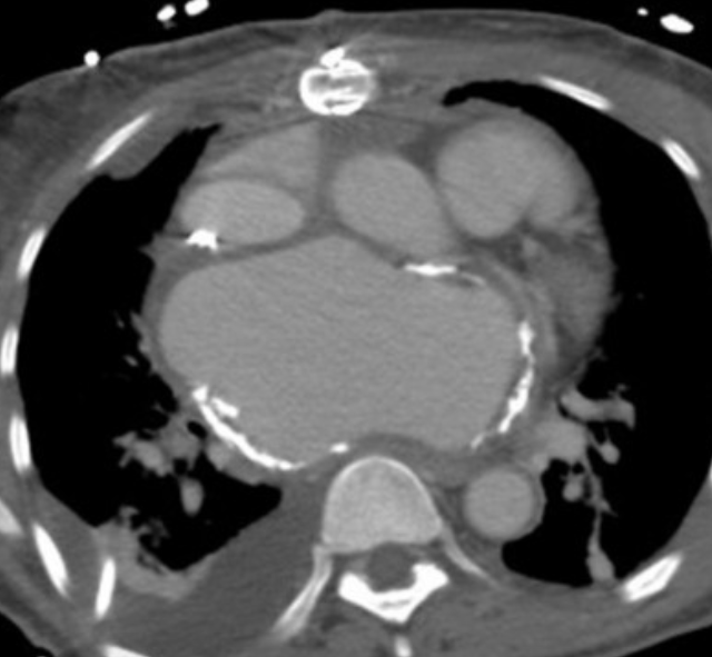 (mitral calcs in the setting of LA enlargement are suggestive of the same pathology)