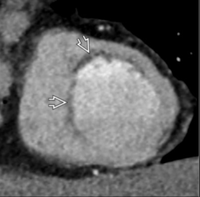 show subendocardial fatty metaplasia, almost dx of prior MI , here in LAD distribution