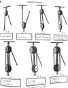Standing block: attached to a permanent support. Running block: attached to the load (thing being moved) Standing part: part of line attached to the standing block or permanent support. Hauling part: part of line to be heaved. Falls: part of the line supporting the weight of the load (thing being moved)