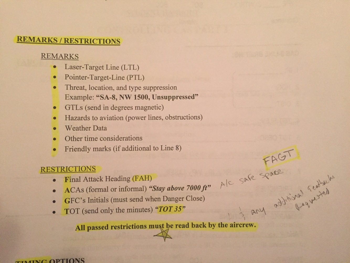 T- Threat E- Enemy F- Friendlies A- Arty C- Clearence authority H- Hazards R- Remarks/Restrictions