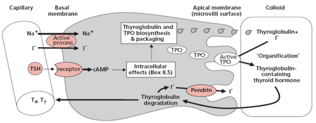Describe the synthesis of thyroid hormones?