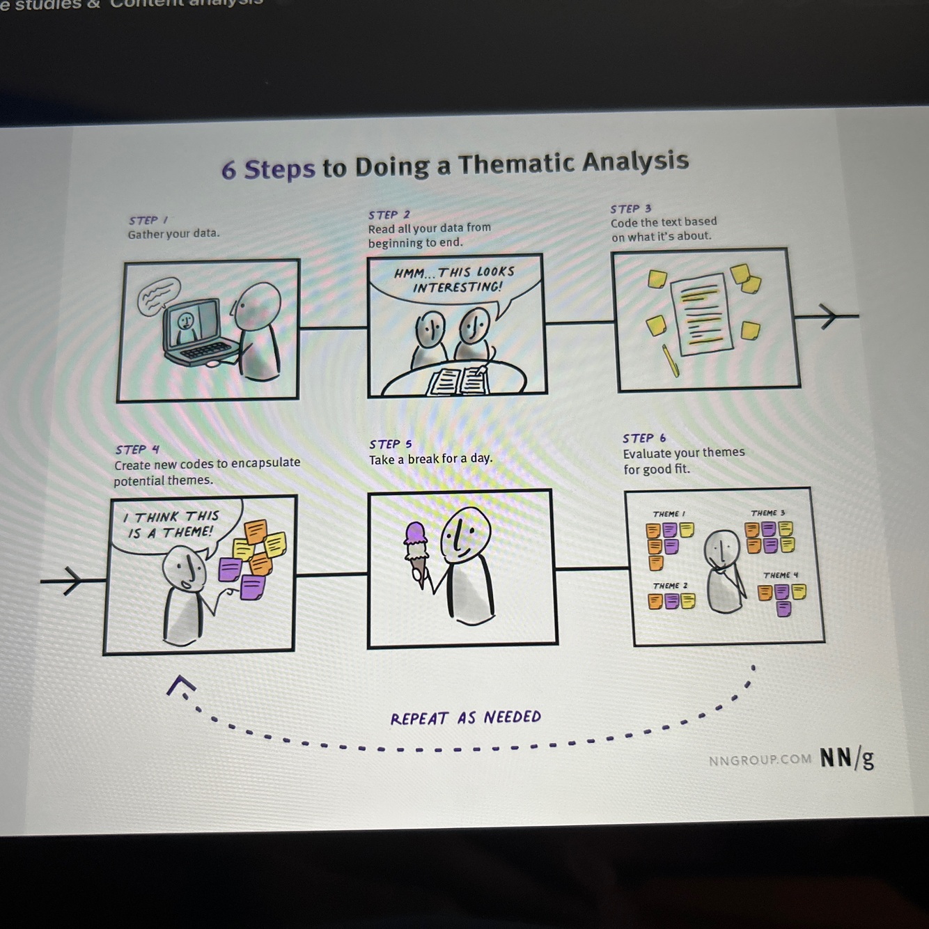 Thematic analysis is like content analysis but is more qualitative and aims to produce themes rather than word counts.