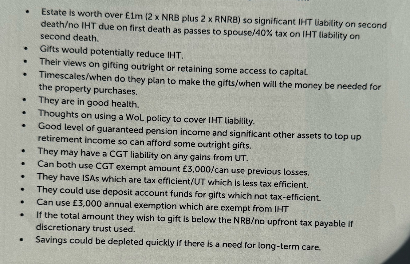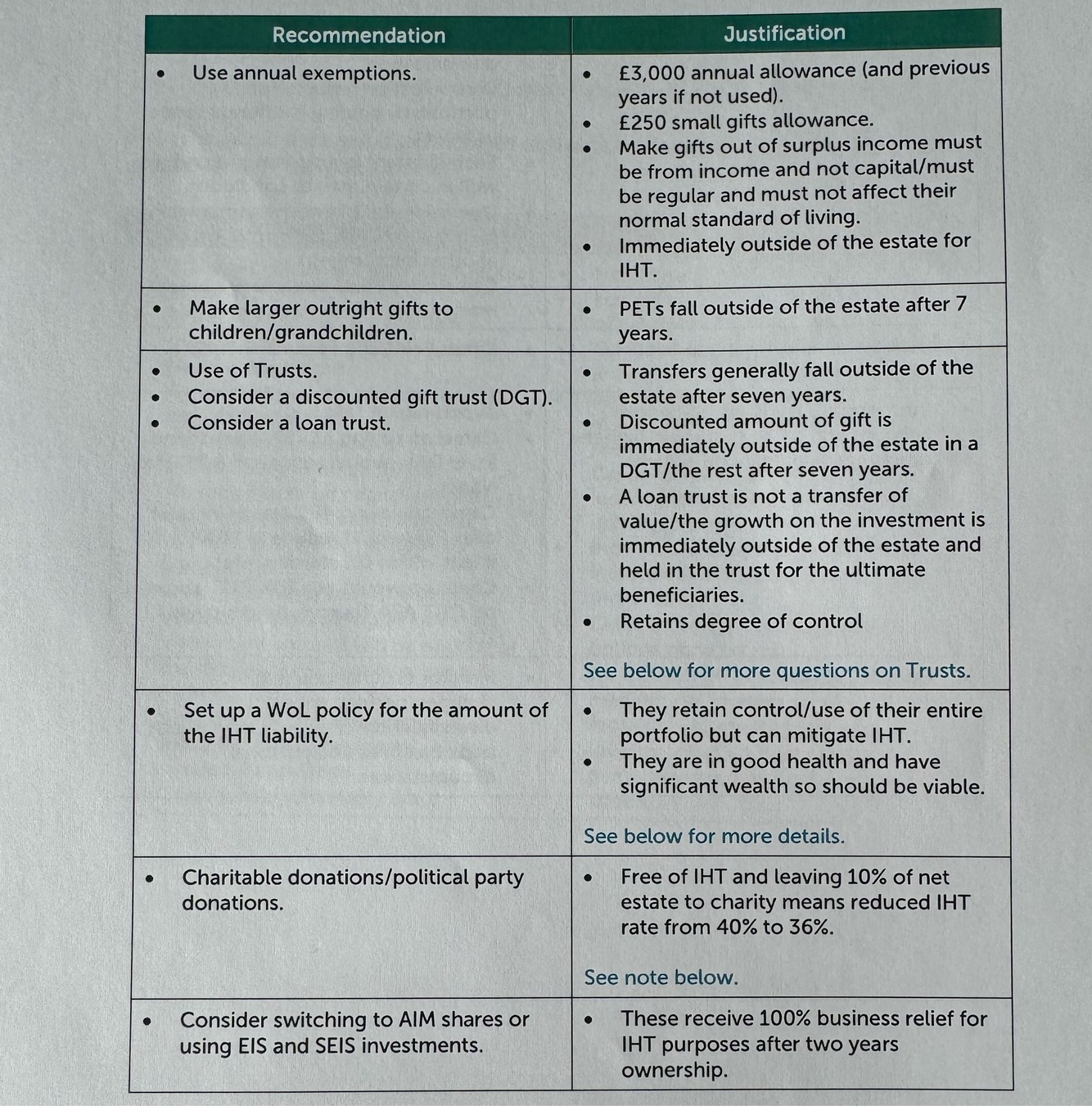 Recommend and justify a range of solutions that could help them mitigate their IHT liability