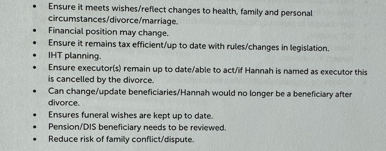 Outline to kabir why he should review his death benefit nominations and his will on a regular basis