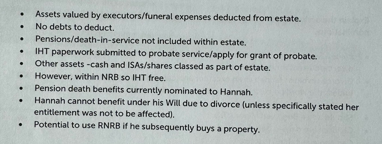 Outline to kabir the process that will be used to wind up his estate on death and his assets will be treated for iht purposes