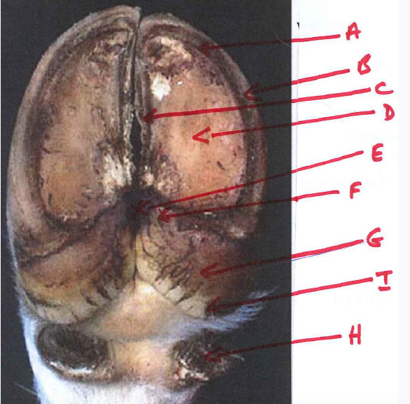 B- abaxial wall of hoof
