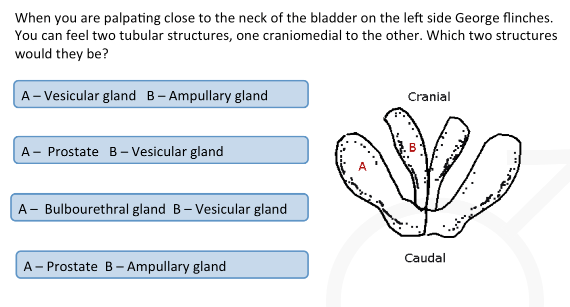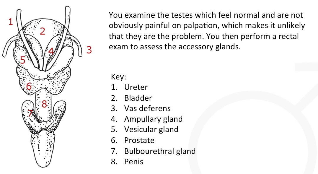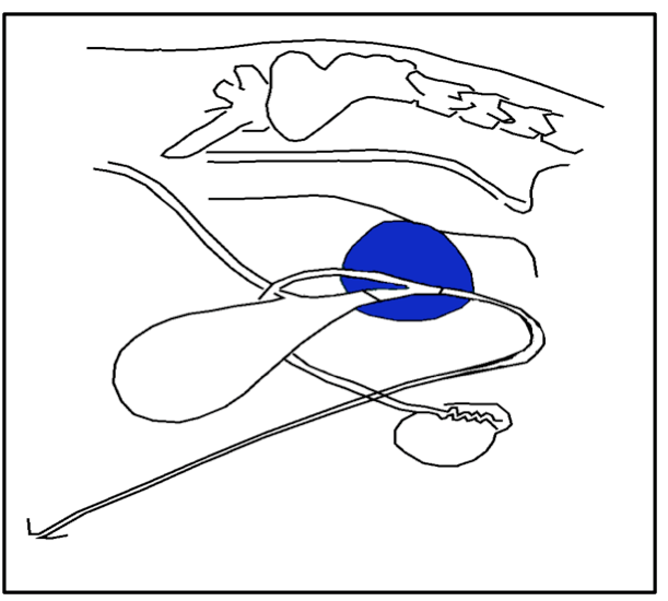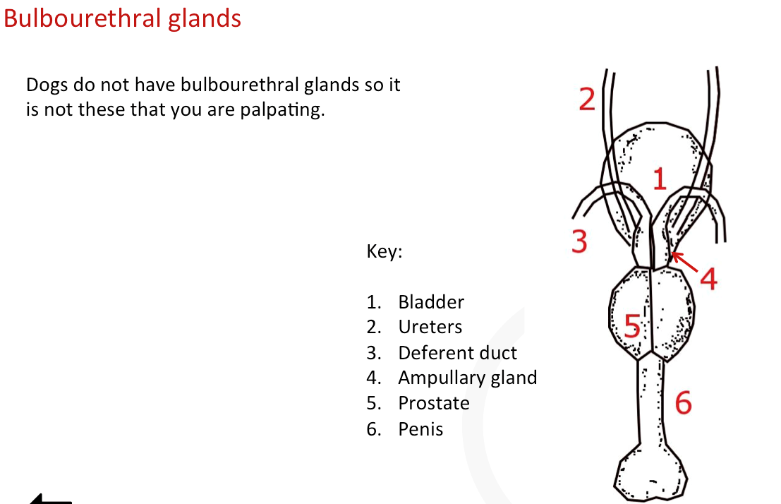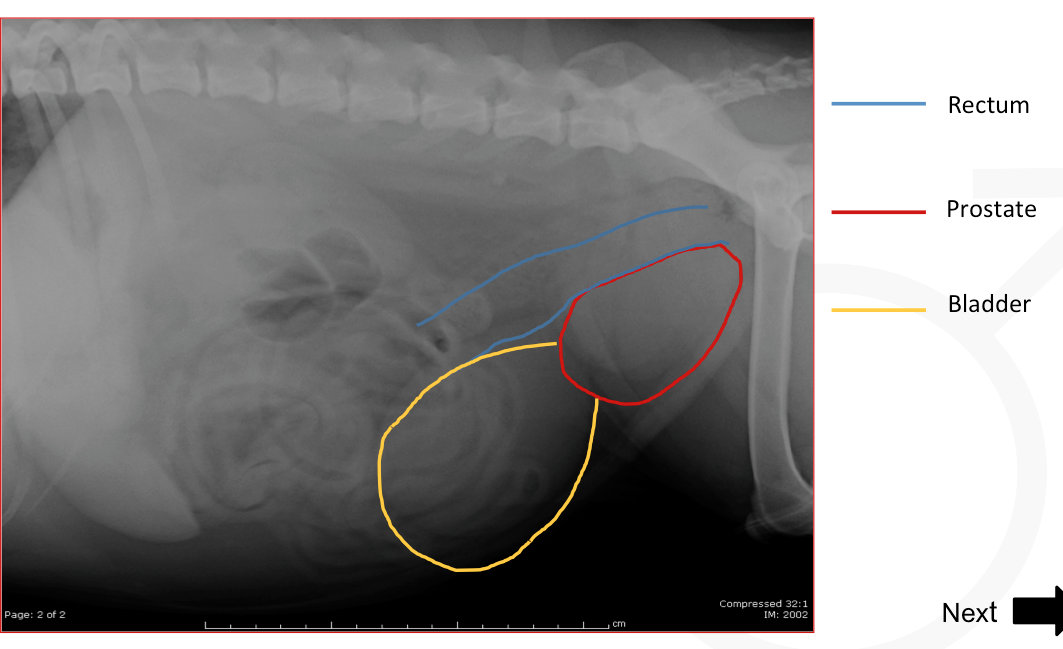 Rectum, prostrate, and bladder location in a dog