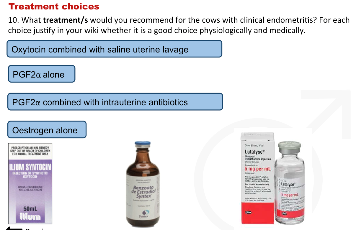 *Most bitches with pyometra are presented during the luteal phase of the cycle with purulent vaginal discharge in cases of open pyometer and PU/PD (closed pyometra- often presented at a later stage of disease when endotoxins absorbed from the uterine lumen already resulted in a generalized isllness– elevated WBC count, prerenal azotemia, hyperproteinaemia, and hyperglobulinaemia)
