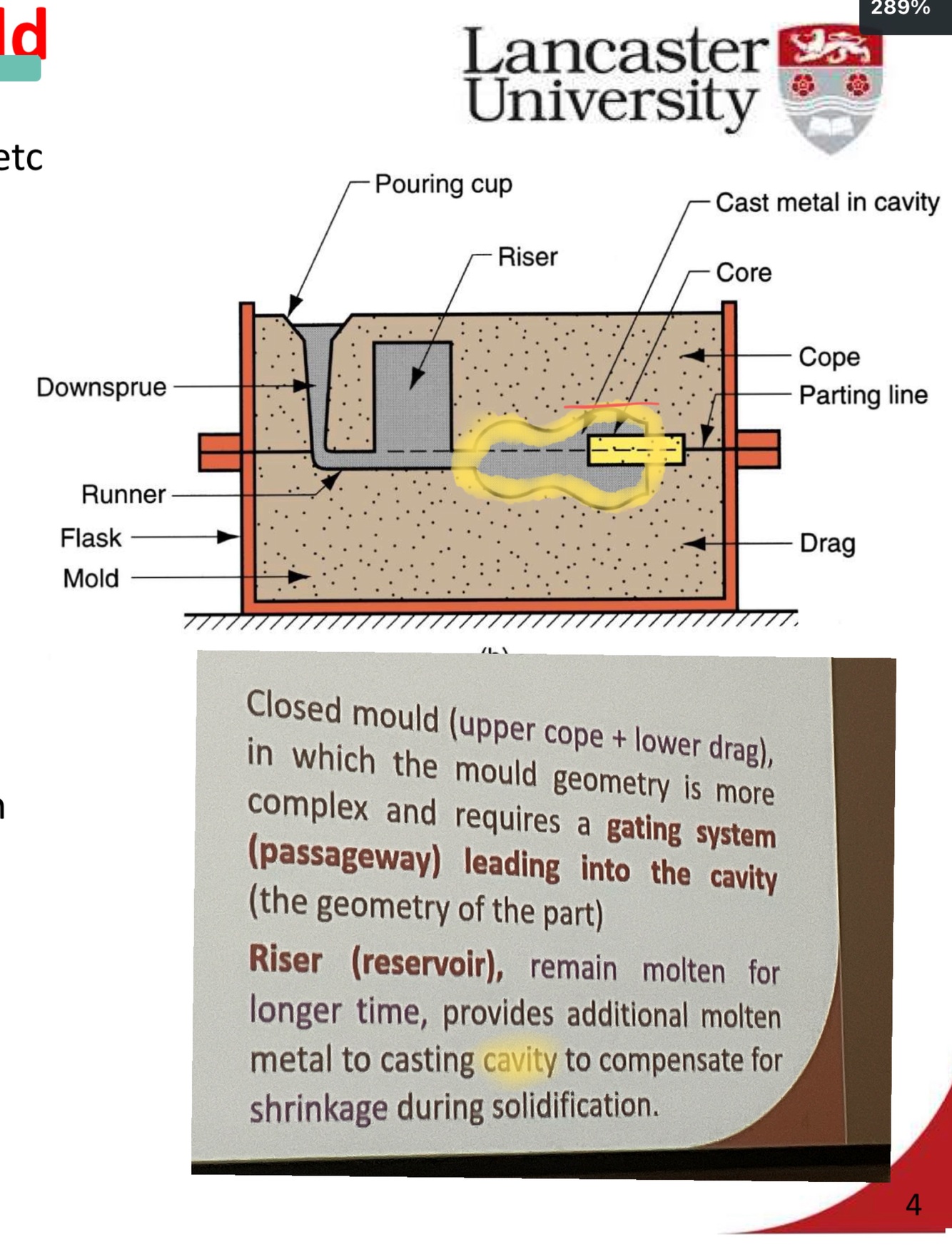 The Mould also contains a core held up by Chaplets