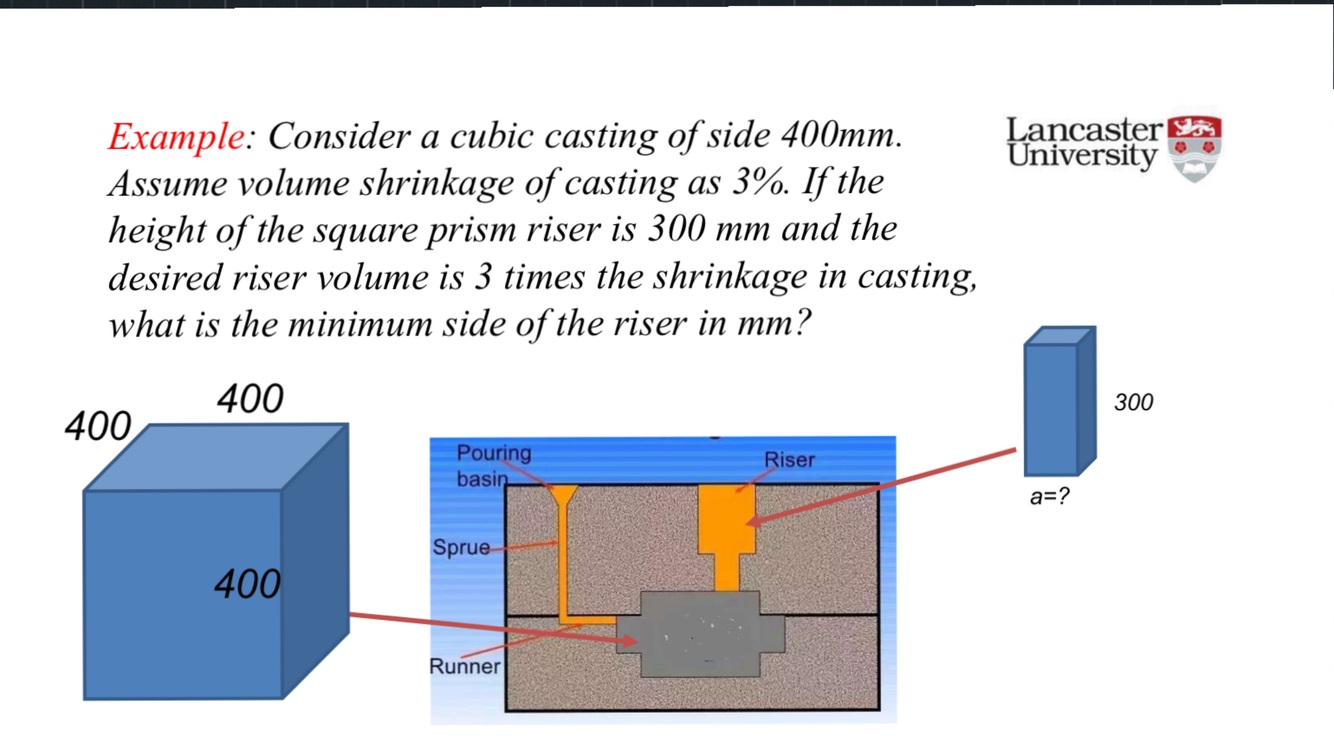 Pouring Rate (Slow enough to not wear away the mould internal surface, fast enough so it can fill the whole cavity before solidifying)