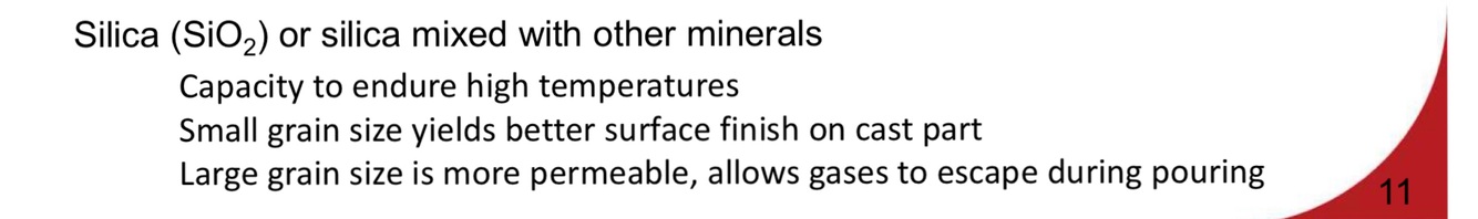 Permeability - Allow Hot air and gasses to pass through voids in sand