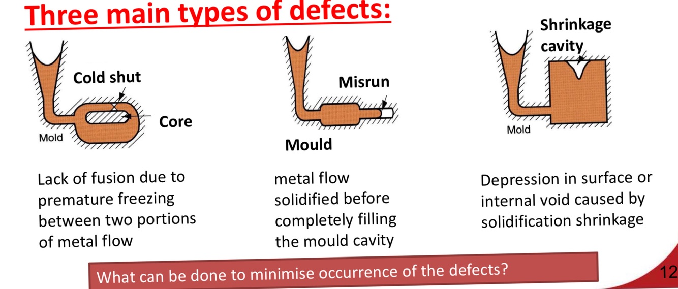 Describe the 3 Main types of Defects with Casting