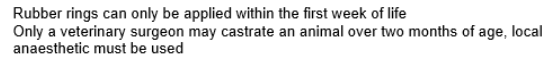 What is the legislation regarding cattle, pigs and sheep castration?