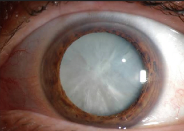 Chemical modification of the lens proteins –> change in lens colour