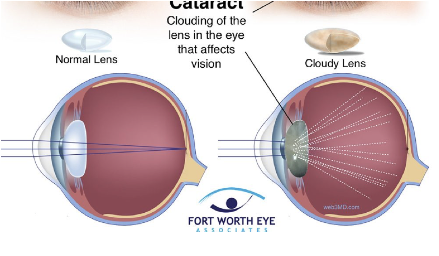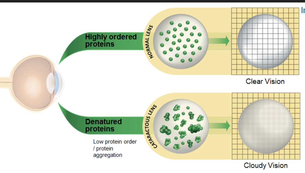 Protein depositions in lense cause change in refractive pover of lense –> blurred due to no focal point