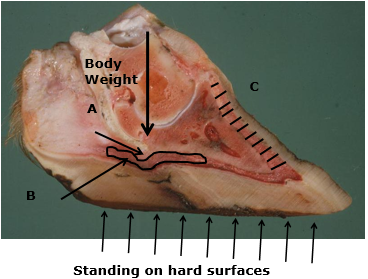 –Changes in the structure and function of the digital cushion may lead to poor / inadequate cushioning and the formation of new bone on P3 may exacerbate the problem