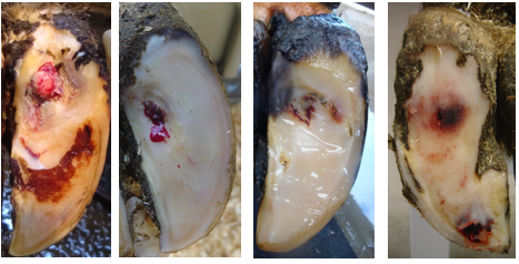 –Horn production completely arrested at the sole ulcer site for a prolonged period. Stop growing due to the pressure.