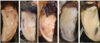 –Small circular (1-4 cm), moist browny grey exudative areas of epidermal liquefaction + matting of the surrounding hair