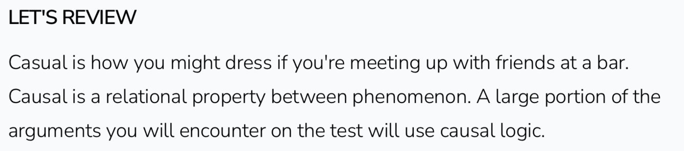 When you encounter a correlation on the LSAT, consider four common hypotheses: