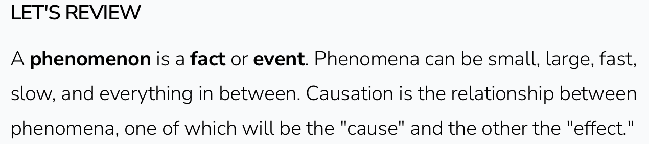 An explanation is our way of trying to understand. It’s our way of telling a CAUSAL story to make sense of the PHENOMENA
