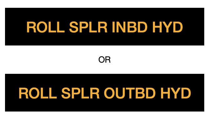 Remarks: Illumination of the ROLL SPLR INBD HYD caution light at an airspeed above 135 knots may be indicative of a spoiler cable failure. If both “ROLL SPLR INBD HYD” and “ROLL SPLR OUTBD HYD” caution lights illuminate that indicates a possible spoiler cable failure.