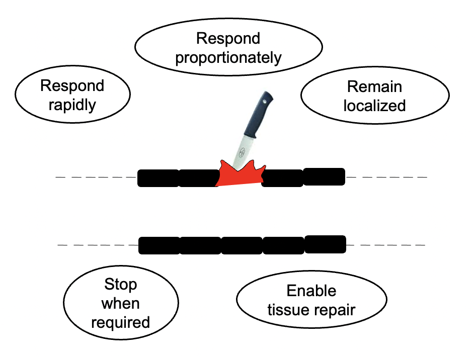 what are 5 important things the body must do when injury occurs?