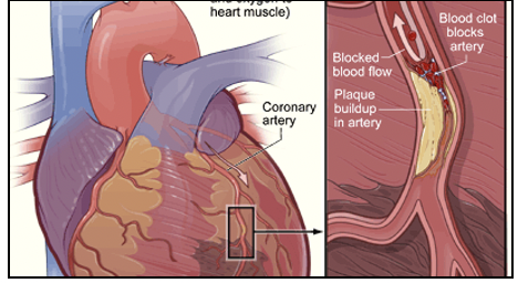 it is when the coronary artery gets blocked by a clot