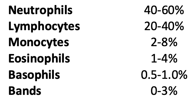 List the white blood cells in order of abundance in the body.