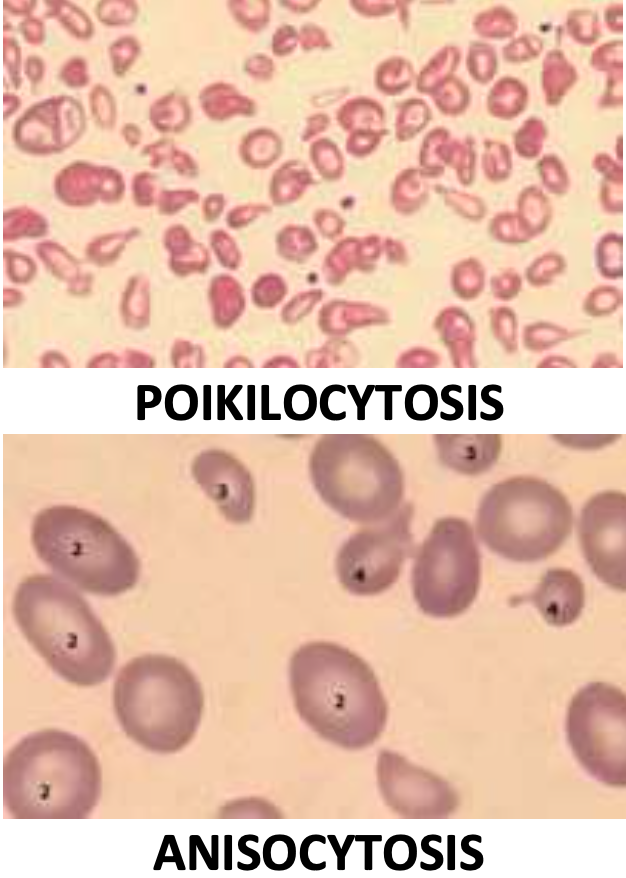 What is the difference between poikilocytosis and anisocytosis?