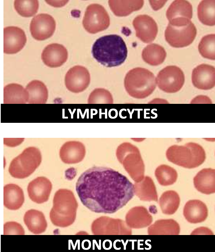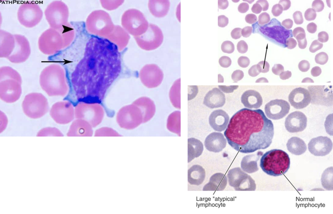 atypical lymphocytes (activated; note the blue skirt)
