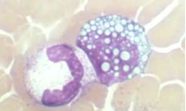Mott cell: ab-producing B cell filled w/ab vacuoles