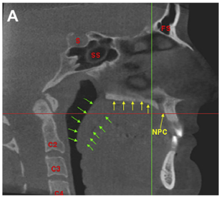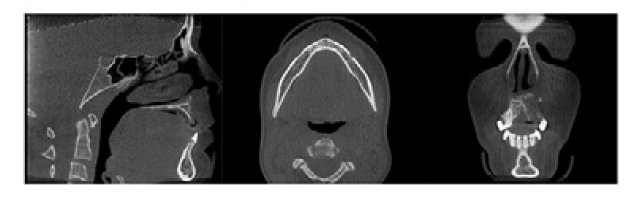 Axial images with computer generated superimposed curve of alveolar process