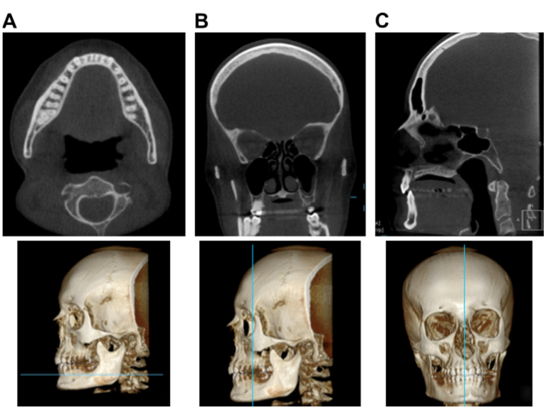 Single slice of the area interest in a CBCT shown by a line