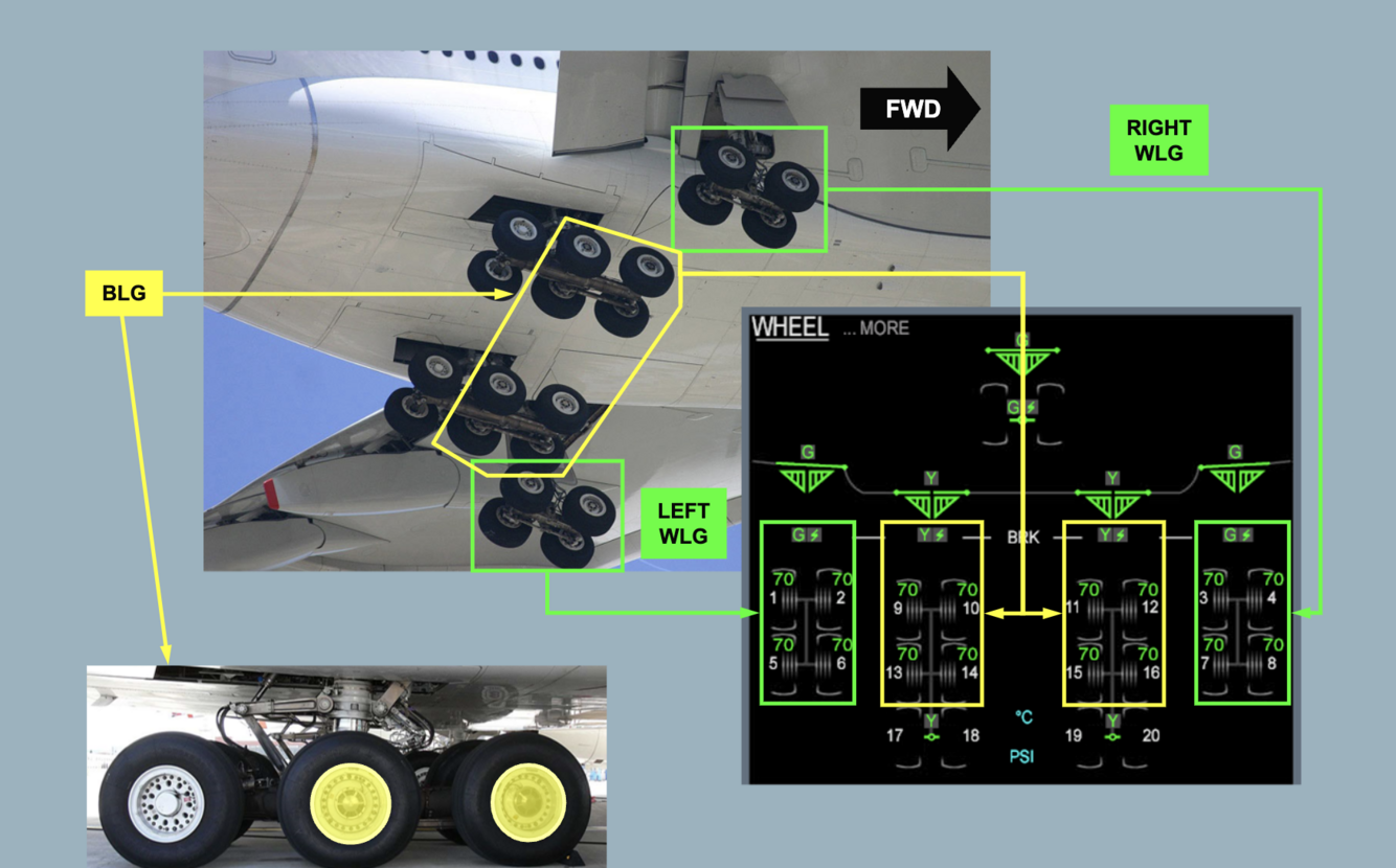 After takeoff, during the landing gear retraction, the WLGs and BLGs wheels are braked.