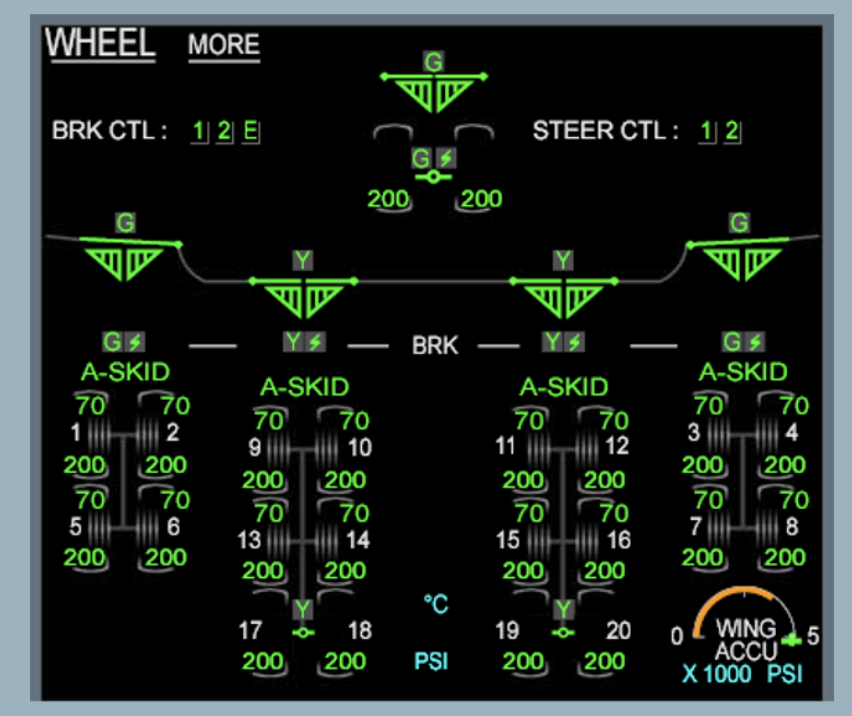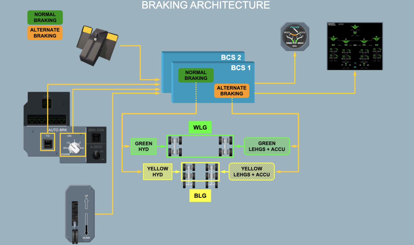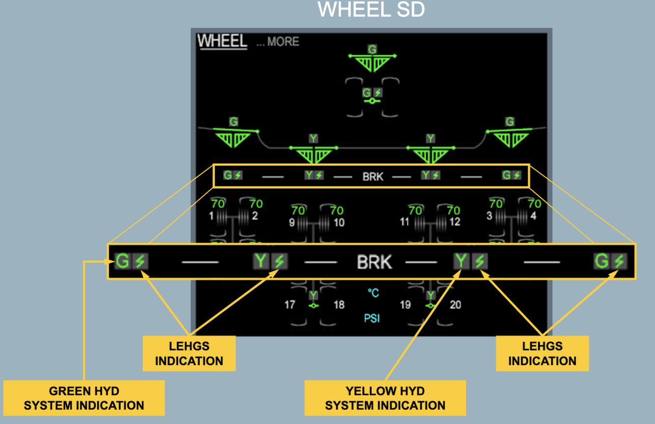 Same layout as Normal but the G+Y hydraulic power is provided by the The Local Electro-Hydraulic Generation System (LEHGS) and associated accumulators.