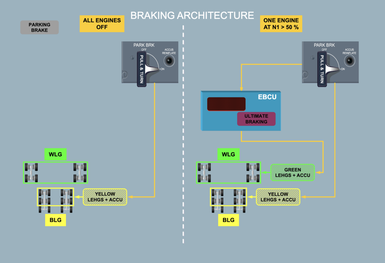 * The PARK BRK handle on the BLGs and the EBCU on the WLGs if at least, one engine is running at** N1 > 50 %.**