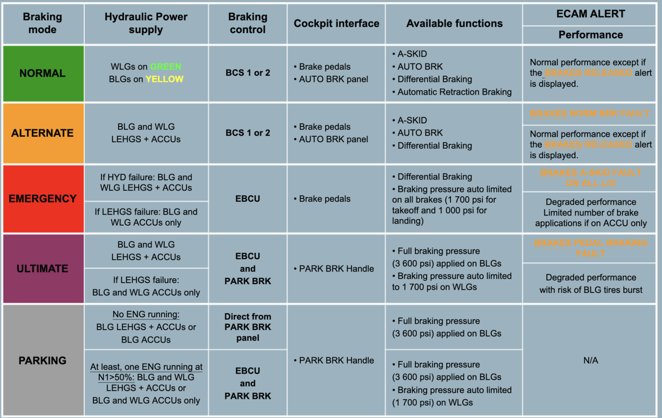 * Normal braking * Alternate braking * Emergency braking * Ultimate braking, and * Parking brake.
