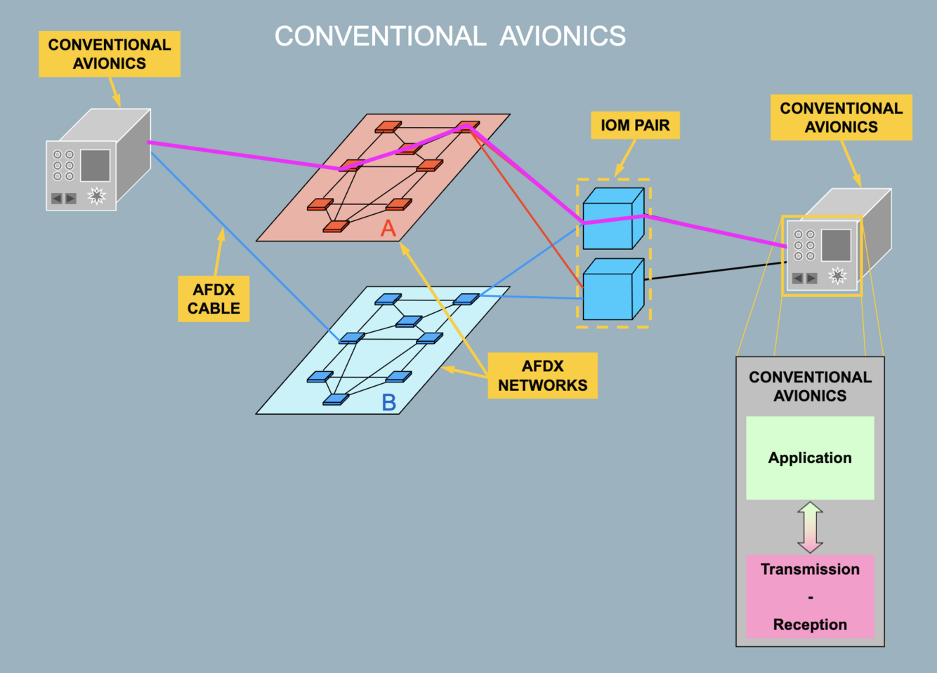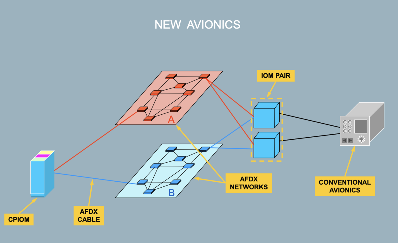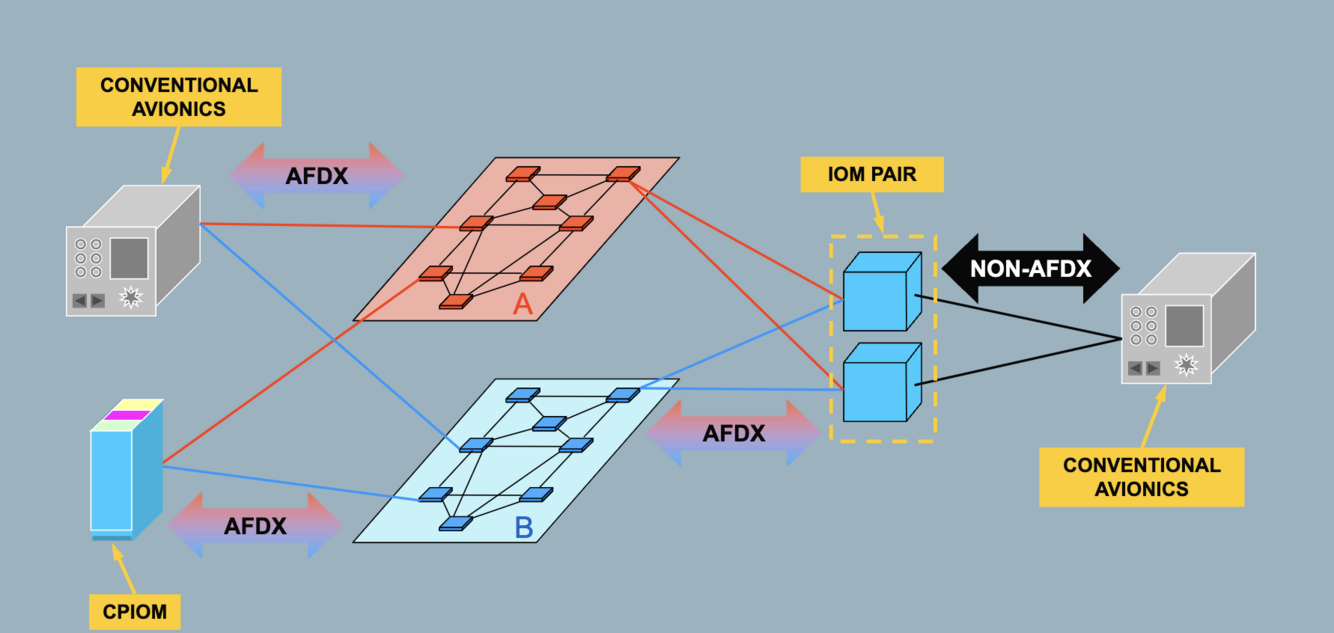 An IOM manages the transfer to/from AFDX networks of different types of inputs/outputs, generally used by several systems.