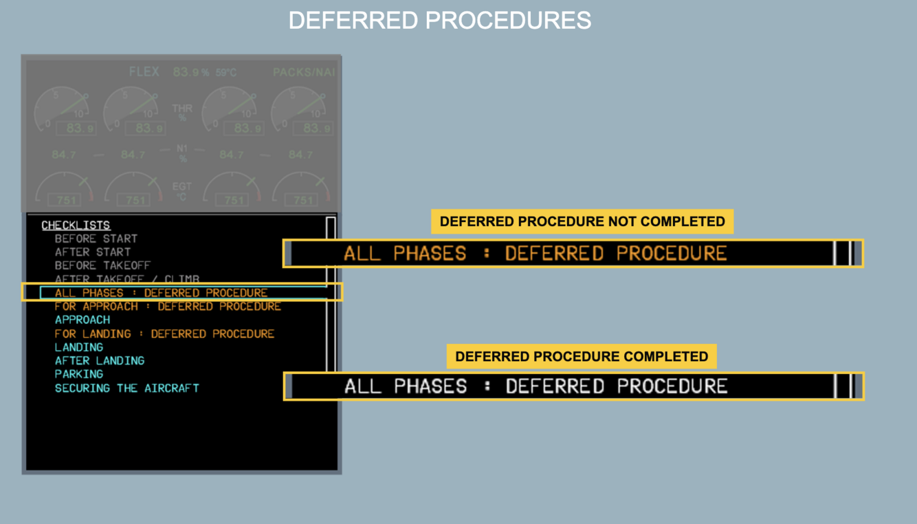 Action items not detected by ECAM (e.g. Baro Ref) denoted by a box before the action and must be validated by using the check button on ECP
