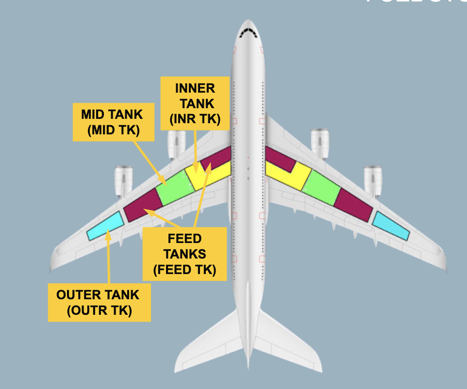 Each wing has one surge and one vent tank. THS has a vent/surge tank. They are not displayed on FUEL SD