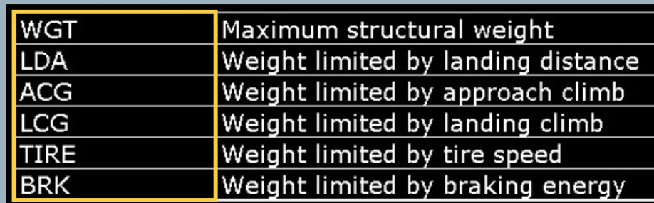 What are the limitation codes on the landing performance application?
