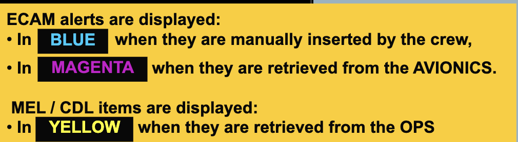 How are ECAM alerts and MEL/CDL items colour coded in the performance apps?
