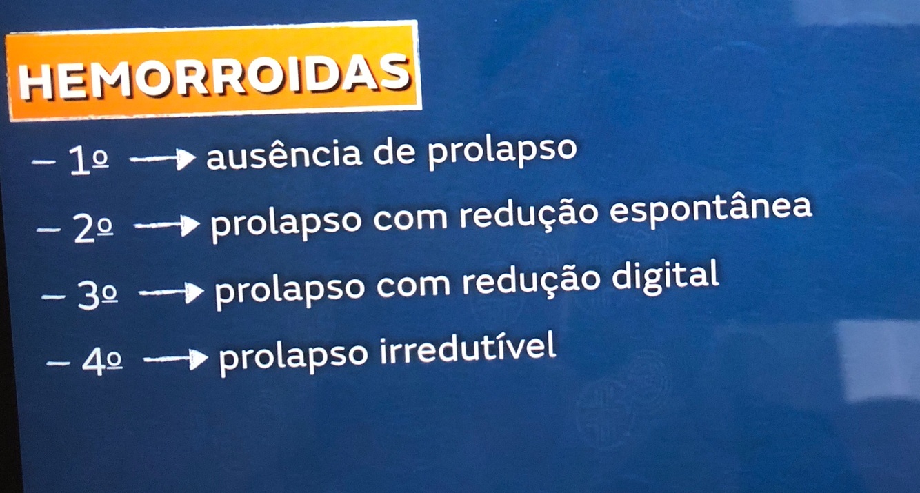 - classificação do prolapso nas hemorroidas interna