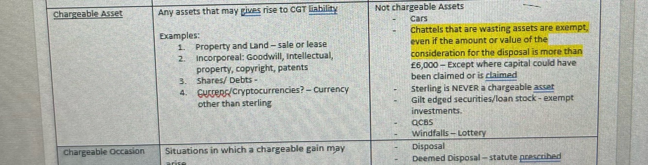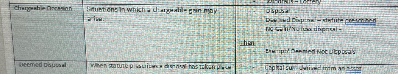 A chargeable gain arises when a chargeable person disposes of a chargeable asset on a chargeable occasion