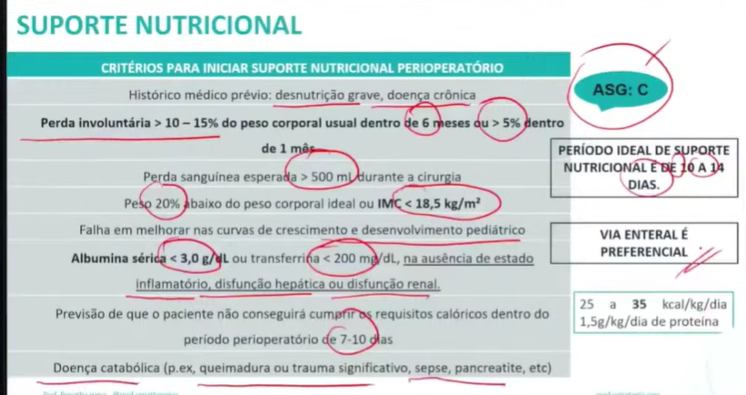 1- ALBUMINA (<3 - fator de risco INDEPENDENTE para complicaçõespós-op como sepse, ira e infecção) - aumento de morbidade;