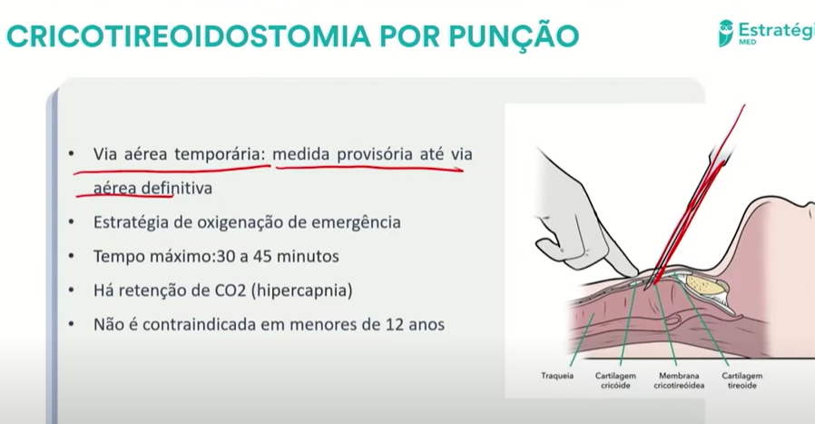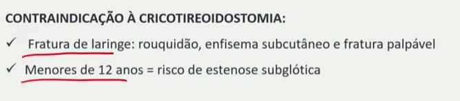 Cricotireoidostomia - indicações (sao 5) e CI (2) e o local onde faz