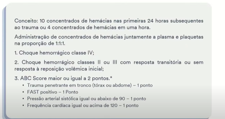 INDICAÇÃO DE TRANSFUSAO MACIÇA - O QUE É ESSA TRANSFUSAO - O QUE É ABC SCORE