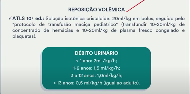 reposição volêmica na criança, como é feita e como é avaliado o debito urinário